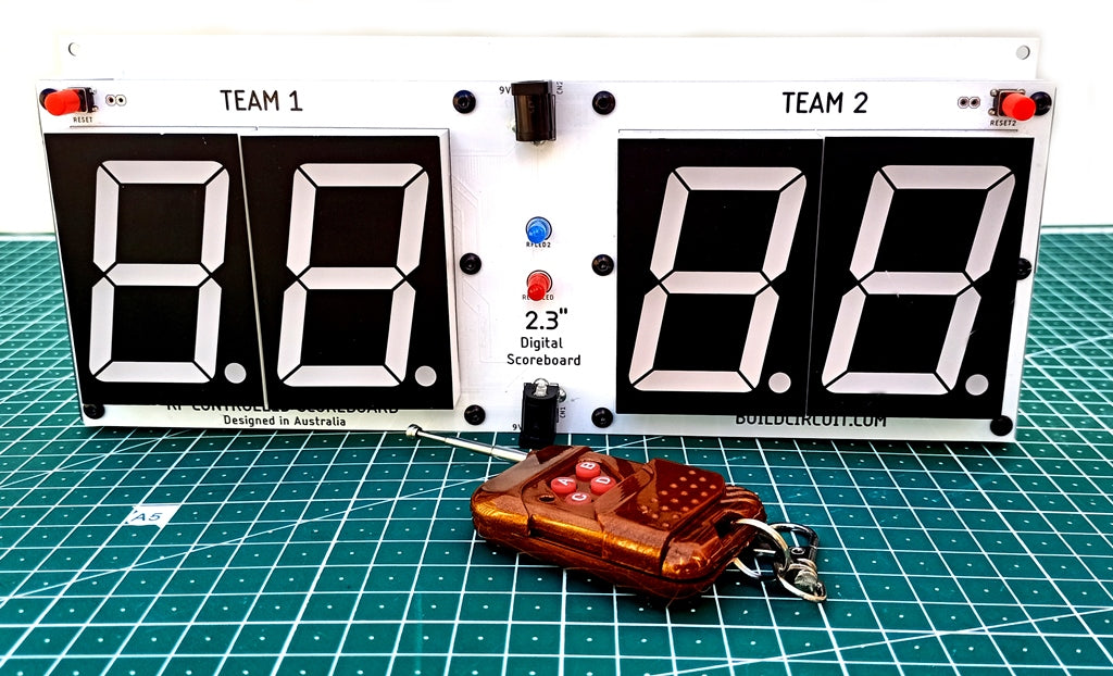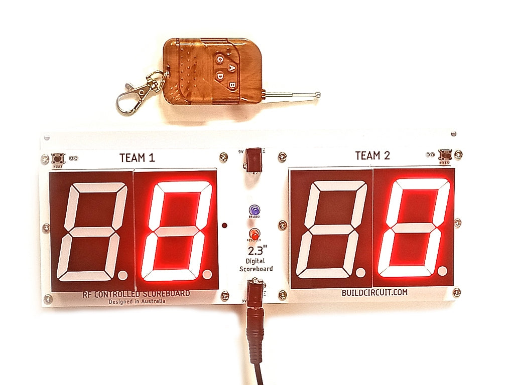 This is a RF remote controlled do-it-yourself (DIY) digital scoreboard for indoor games. You can either order fully assembled scoreboard or DIY kit.