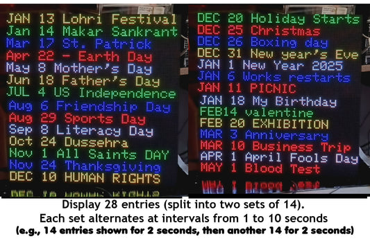 Effortlessly display school announcements with an ESP32-powered RGB digital notice board. Customize and showcase up to 28 dates and events with vibrant colors, all controlled via phone or computer. Perfect for indoor use!